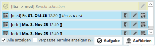 Mit Klick auf ![](https://4075055381-files.gitbook.io/~/files/v0/b/gitbook-legacy-files/o/assets%2Fluna%2F-M3MjiABRMWwqbQZq-if%2F-M3MjpBdzsv8OcprvWUx%2F361426.png?generation=1585241381715597\&alt=media) öffnet sich der Termin in der Agenda und mit Klick auf eine Operation öffnet sich der Termin in der Operationsplanung.